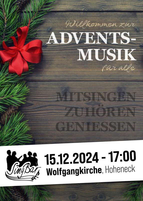 Am 15. Dezember 2024 um 17:00 Uhr lud SingBar ein, mitzusingen, zuzuhören oder die besinnliche Adventsmusik einfach zu genießen in die Wolfgangkirche Hoheneck.