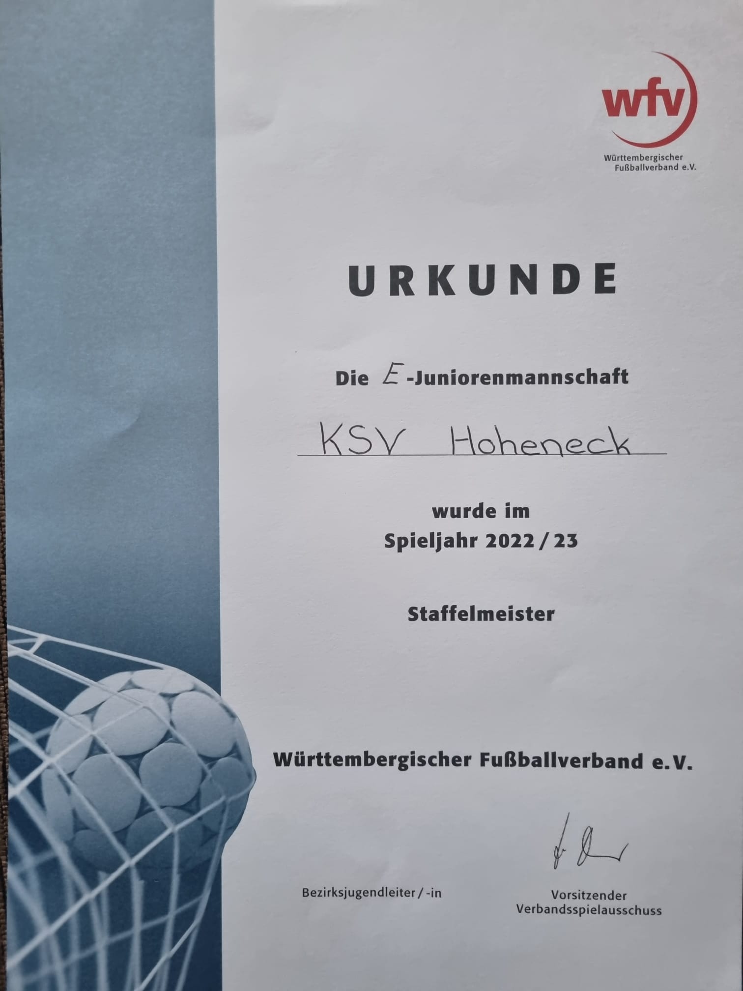 Die E Jugend (E1) wurde nachträglich vom WFV (Württembergischer Fußball Verband) zur Meisterschaft durch eine Urkunde geehrt.