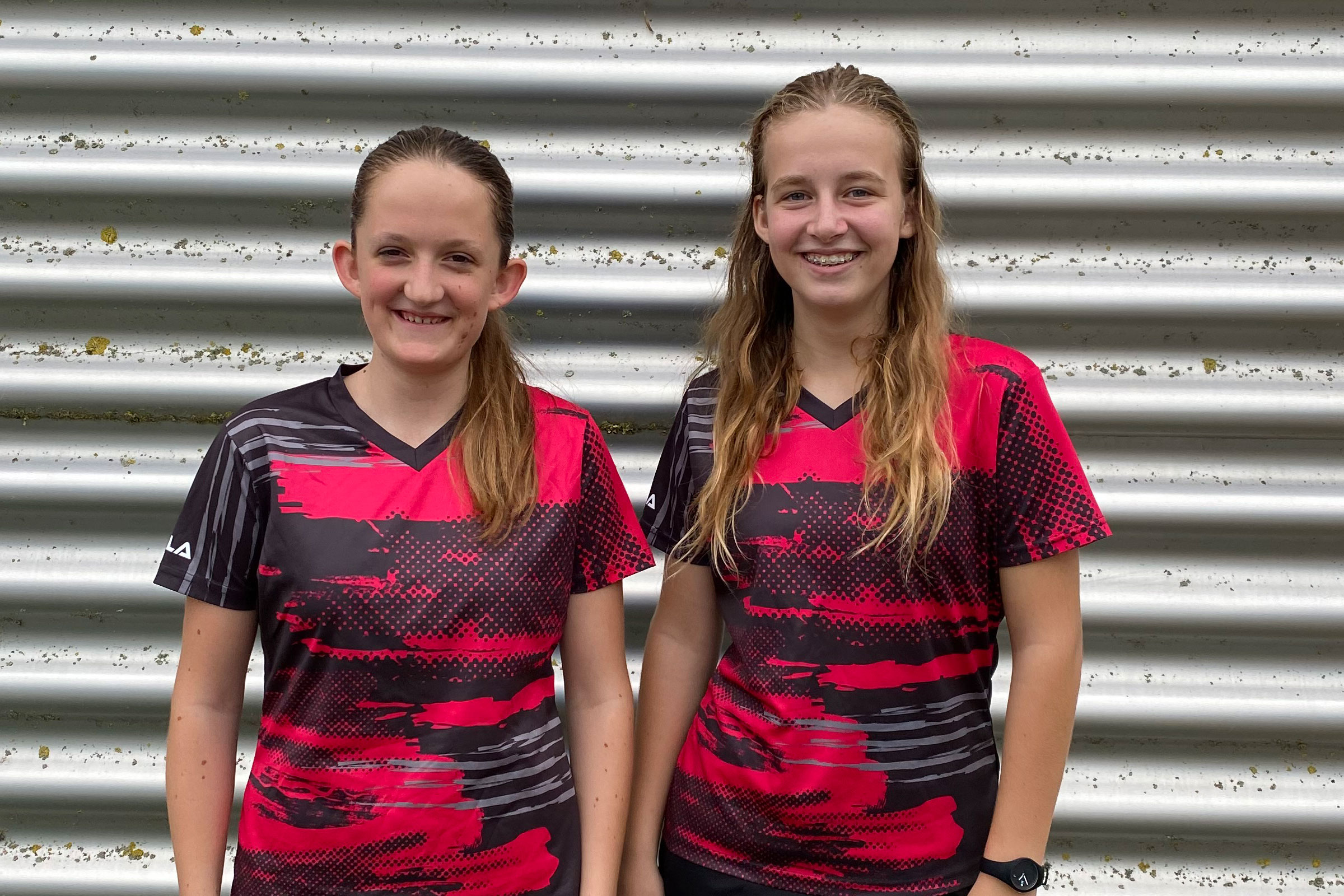 Mädchen U12 Doppel: 3. Platz für Johanna Braun und Maria Liebl (rote Trikots) -