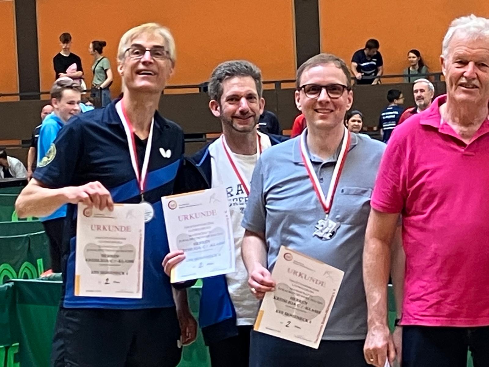 Dort wartete mit der SpVgg Mönsheim II ein Gegner auf Augenhöhe – und leider auch mit dem besseren Händchen in den entscheidenden Momenten. Zwei Fünfsatz-Krimis gingen denkbar knapp verloren, am Ende hieß es 2:4 – Pokal futsch, aber Herz gezeigt. Gratulation an Mönsheim – und Hut ab vor unserem Trio Eccard von Bentivegni, Stefan Schnaterbeck und Florian Keller, das sich bis zum Schluss wehrte. Silber glänzt schließlich fast wie Gold, nur etwas bescheidener.