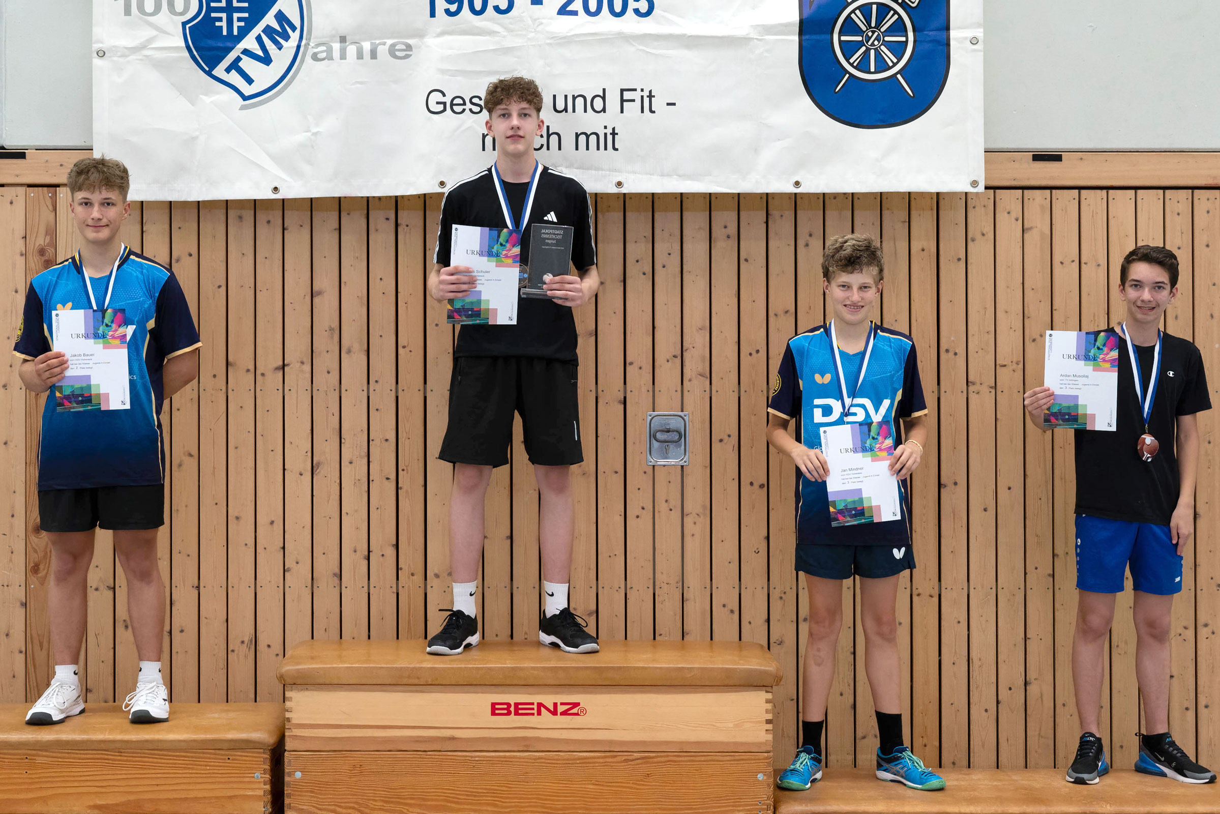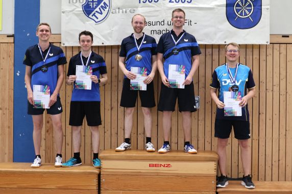 Oskar Sonntag & Henrik Schulz belegten einen beachtenswerten dritten Rang im Doppel. Sie hatten die späteren Sieger vom TV Aldingen im HF am Rande einer Niederlage und unterlagen nur knapp mit 2:3. Hervorzuheben ist neben ihrem guten spielerischen Niveau auch die Kommunikation miteinander und die kluge Umsetzung der Tipps vom Coach.