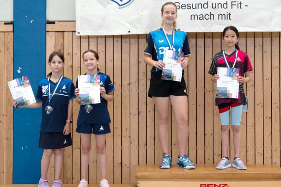 Vivienne Faßnacht holt sich als technisch beste Spielerin den Wanderpokal der Stadt Ludwigsburg und siegt auch im Doppel zusammen mit Xiaoyu (Emmi) Chen.