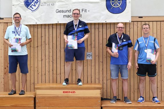 Im Doppel verloren Florian und Uwe ihr HF etwas nachlässig. Trotz einiger klarer Punkteführungen in den Sätzen fehlte es hinten raus an der Konzentration. Sie belegten damit den dritten Rang und standen auf dem Podium. Den erwünschten Titel holte Florian sich dann im Einzel.