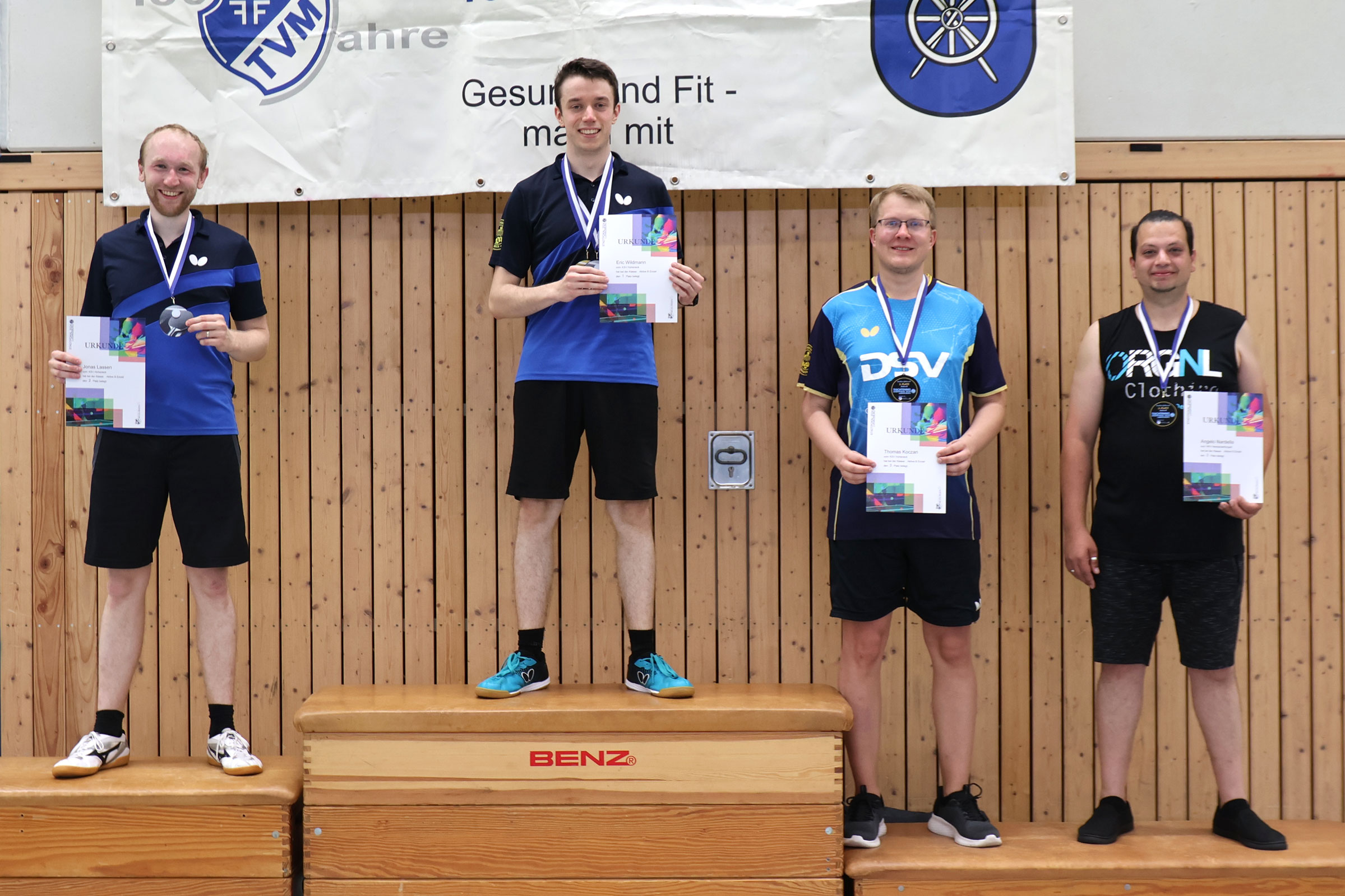 Jonas & Patrick gewannen knapp mit 3:2 gegen Eric & Steffen. Thomas & Holger, der nur im Doppel antrat, sicherten sich den dritten Rang.
