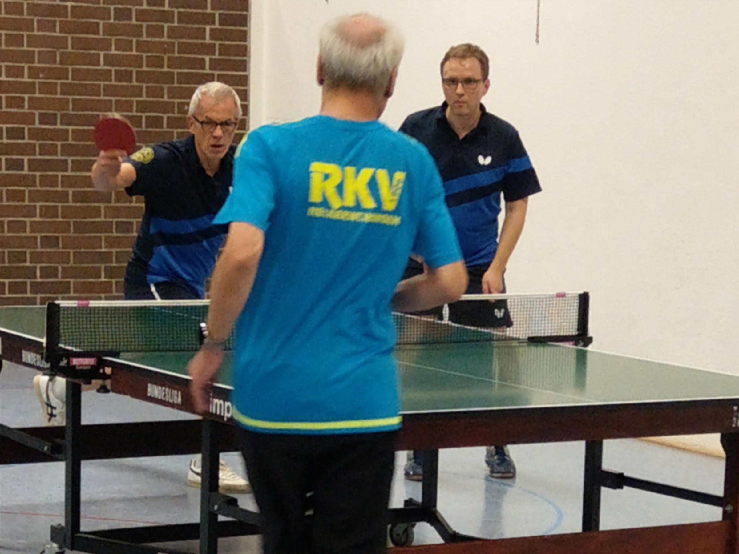Ernüchternd mussten wir schnell feststellen, dass es gegen den heutigen Gegner nichts auszurichten gab. Gegen den starken Konstantin Kerner, Doppelnoppenspieler Rudi Evers und den Aufschlagspezialisten Jürgen Kloiber konnten wir in der Aufstellung Stefan Schnaterbeck, Christian Schnupp und Florian Keller jeweils nur einen Satz für uns entscheiden. Auch im Doppel mussten Stefan Schnaterbeck und Christian Schnupp sich leider in drei Sätzen geschlagen geben.
