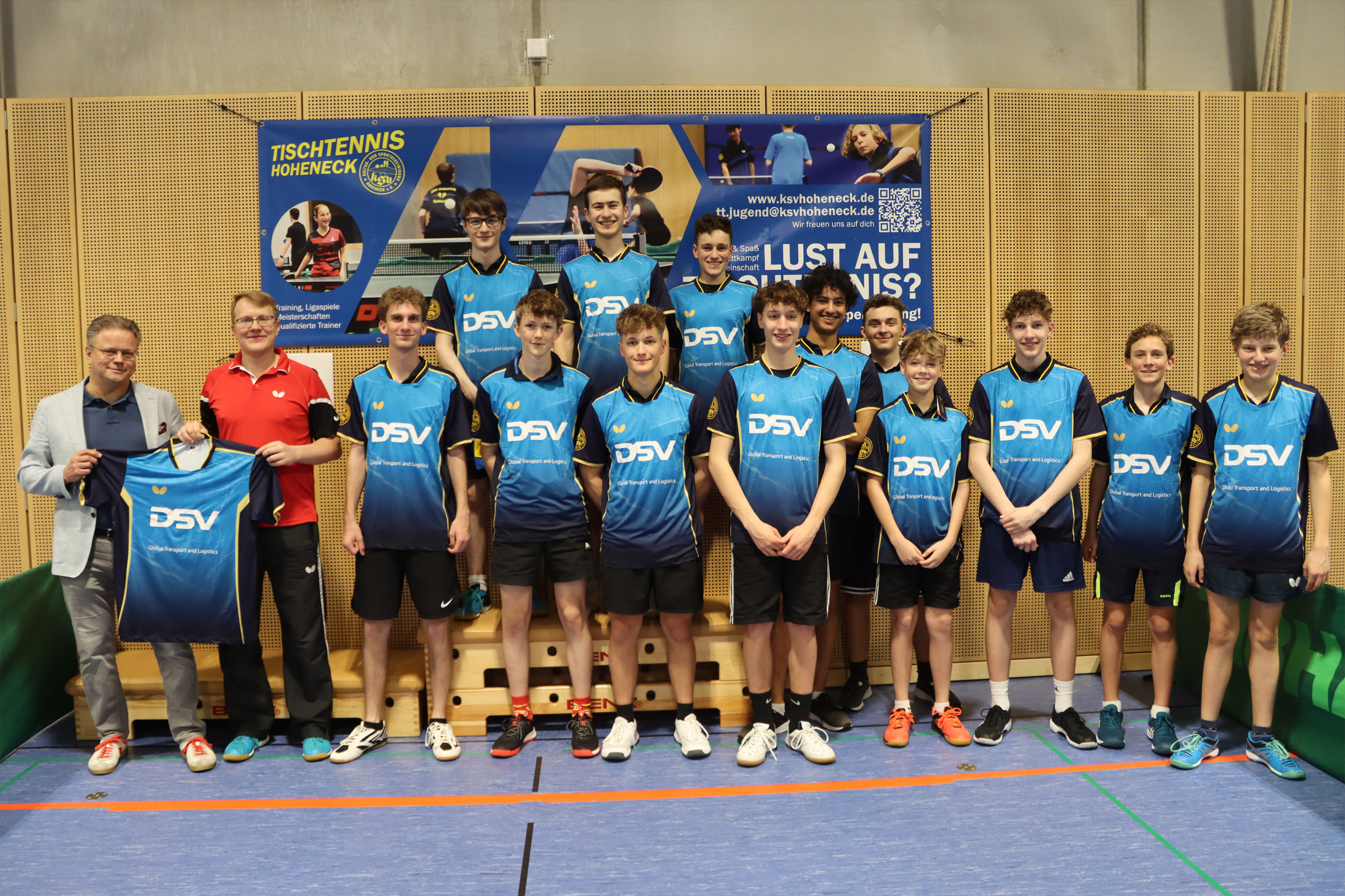 Auf Initiative unseres Jugendleiters Thomas Koczan konnten wir einen Sponsor für neue Jugend-Trikots gewinnen. Über die hochwertigen Trikots, gesponsort von der Firma DSV Air & Sea Germany GmbH im Gegenwert von ca. 1.500 Euro, freut sich die Tischtennis-Abteilung und sagt vielen Dank.